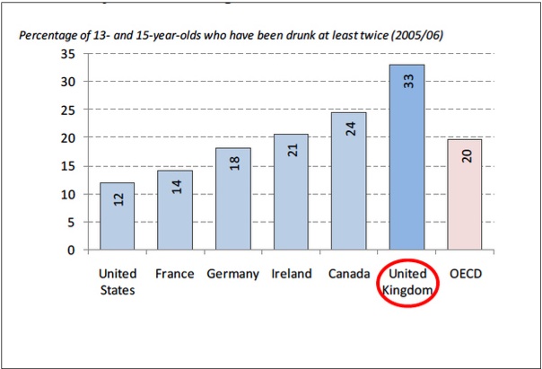 I came upon this little bit of data today and I found it most upsetting. 12% of boys 13-15 in America had been drunk at least twice; whereas 33% of the lads in the UK.